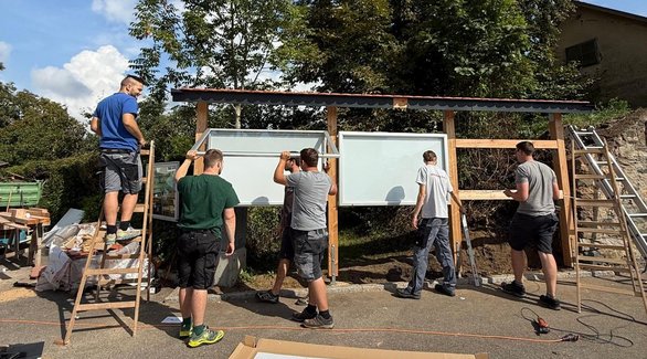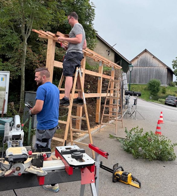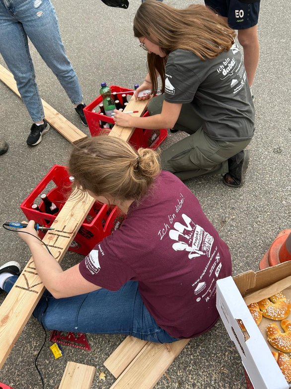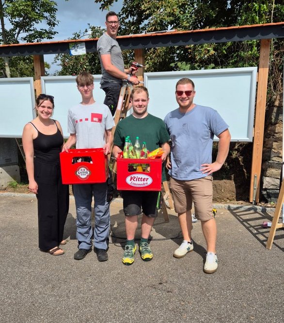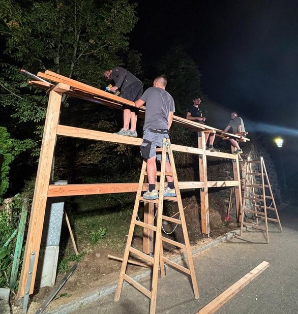 Es wurde noch bis spät in die Nacht gearbeitet. Mit viel Teamgeist, Spaß und Engagement wächst so Schritt für Schritt ein Projekt, das für den ganzen Ort sichtbar sein wird.