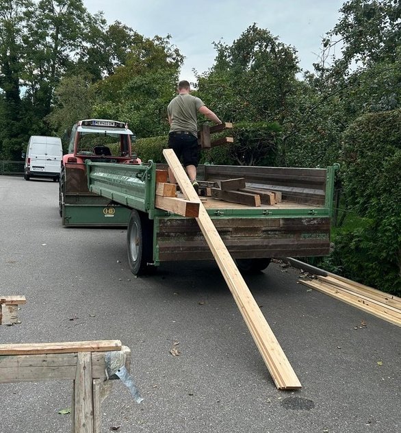 Nach dem vollzogenen Umriss wurde die alte Anschlagetafel auf eine Kipper verladen damit, sie dann entsprechend entsorgt werden kann.
