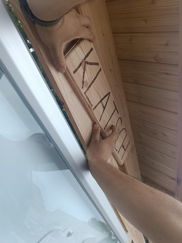 Der Name unseres Projektes wurde noch in Holz eingebrannt!