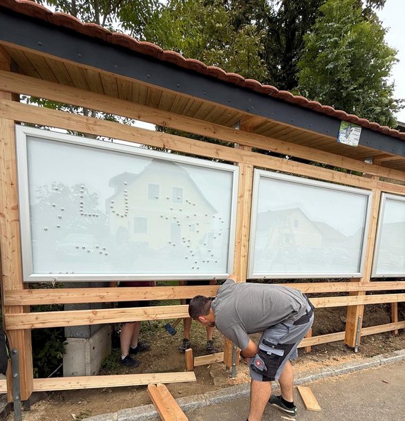 Damit bekommt die neue Anschlagtafel am Kirchenplatz nicht nur frisches Holz und ein stabiles Dach, sondern auch einen Titel, auf den wir echt stolz sein können.