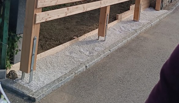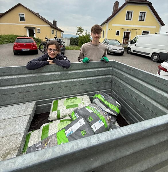 Gemeinsam haben wir das Vlies aufbereitet, Erde aufgeschüttet und den Schotter schön verteilt!