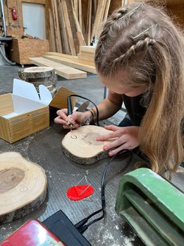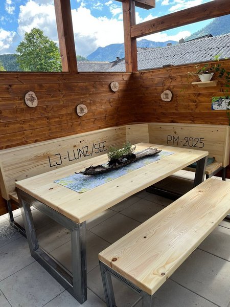 23 h bis zur Projektpräsentation: Es geht flott voran. Die Schalung wird bereits am Pavillon angebracht. An der Sitzgelegenheit wird fleißig weitergetischlert und schon probegesessen :). Auch die Deko ist schon in Arbeit. Auf die Schilder werden Sprüche eingebrannt. Jetzt freuen wir uns schon auf ein Mittagessen im Zellerhof!