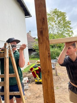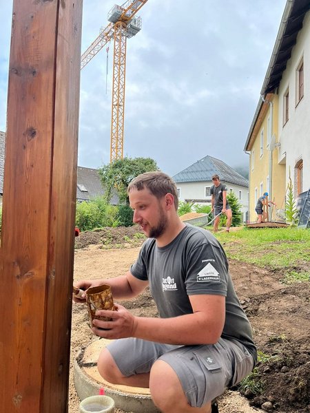 17 h bis zur Projektpräsentation: Und es geht noch immer dahin bei uns. Sowohl in der Werkstatt als auch direkt bei unserem Pavillon! Jetzt sind die Blumentröge schon in Arbeit genauso wie das Schild mit unserem Projektnamen und das Plakat für unsere Projektpräsentation am So, 31.08. um 14:00 Uhr im Pfarrgarten! Außerdem bekamen wir Besuch von unserem Nachbarsprengl Gresten. Danke für eure Unterstützung!