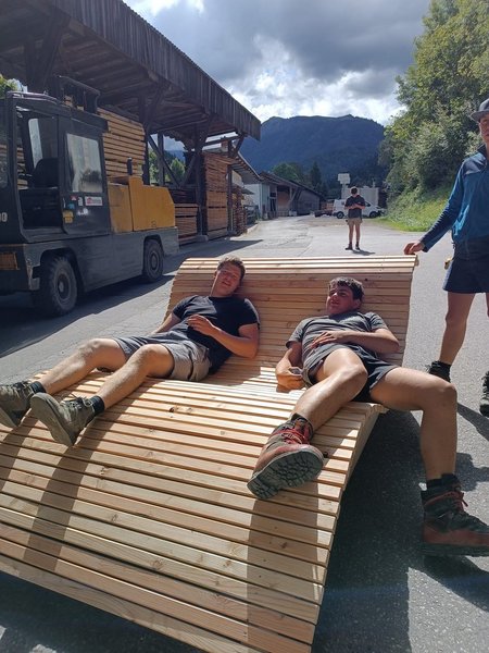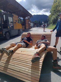 Geschafft! Der Liegestuhl ist da und auch sonst ist alles fertig. Jetzt wird noch zusammengeräumt und alles vorbereitet für die Projektpräsentation.