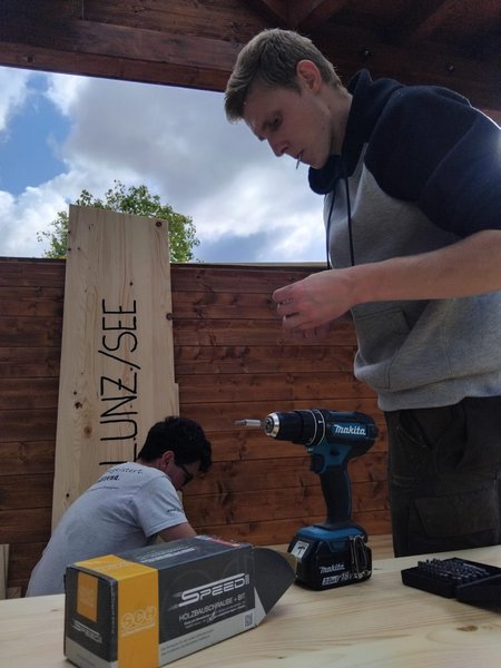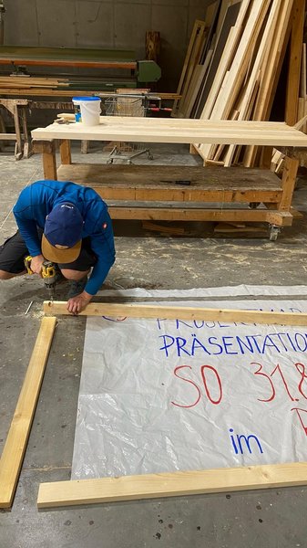 25 h vor der Projektpräsentation: Wir sind weiterhin begeistert bei der Arbeit! Akkuschrauber und Hobelmaschine laufen auf Hochtouren. Auch die Insta-Posts sind in Arbeit. Schaut`s gern vorbei auf unserem Instagram-Account!