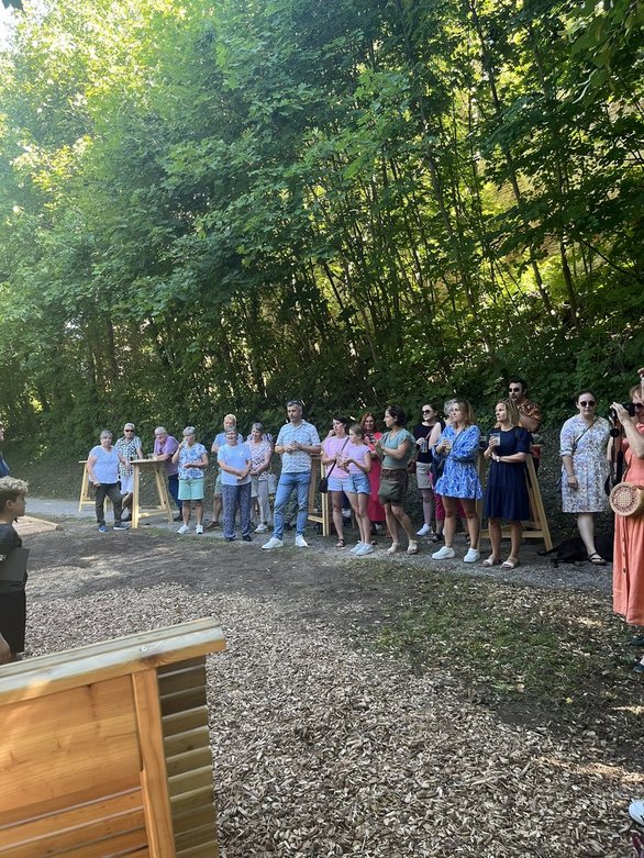 Nachdem der Balance-Weg fertig gestellt war, wurden ebenfalls Hackschnitzel darunter verteilt, um einen weicheren Boden zu schaffen. Ein Quiz über “Allgemeines” aus Neulengbach fand ebenfalls Platz auf einer der bereits vorhandenen Tafeln. Es wurde auch ordentlich Werbung gemacht, für unsere Projektmarathon Präsentation. Das Food Festival in Neulengbach gab eine gute Möglichkeit Bewohner auf unsere Präsentation aufmerksam zu machen. Um 13:00 begann unsere Projektübergabe. Es wurden Brote und Getränke ausgeschenkt. Außerdem wurde das fertige Projekt der Bevölkerung gezeigt.