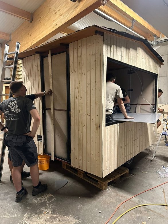Am Samstag Nachmittag ging's wieder rund bei unserem Projekt. Unser Plan war es, in dieser Nacht den Getränkewagen fertig zu bauen, damit wir ihn am Sonntag Vormittag der Gemeinde präsentieren können. Zuerst wurde die Elektronik im Wagen verbaut und daraufhin begannen wir mit der Innenverkleidung und dem Eindecken der Dachfläche. Währenddessen wurden auch unsere Stehtische fertig gebaut. Wir haben bis tief in die Nacht weitergearbeitet um unser Projekt schön abzuschließen. Das Medienteam beschäftigte sich am Nachmittag noch mit der letzten Organisation für die Projektpräsentation und widmeten sich dann für den Video Dreh der #Zaguns Challenge. In diesem Video zeigen wir unseren Treffpunkt in der Gemeinde Nöchling. Dafür haben wir unseren Aussichtsturm hergenommen der Teil war von unserem Projektmarathon 2023.