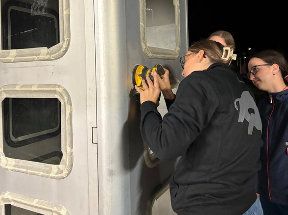 Auch mit dieser haben wir schon angefangen. Einige Mädels sammelten Ideen und fuhren in die Stadt um Farbe einzukaufen. Danach wurde die Telefonzelle für die Farbe vorbereitet. Zuerst mussten die Flächen entfettet werden, danach wurde alles geschliffen. In den Nachtstunden wurde dann das Häuschen bemalt. Morgen geht es dann weiter mit der Innengestaltung.