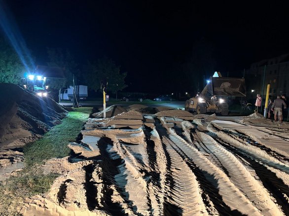 Wir konnten schon einiges erledigen. Am Anfang legten wir ein Flies auf dem gesamten Platz aus, danach starteten wir ihn mit Sand zu befüllen. Voller Tatendrang arbeiteten unsere Burschen mit Traktor und Teleskoplader, um die Fläche eben zu bekommen. Der Platz ist nun fast fertig, der letzte Feinschliff wird morgen gemacht.