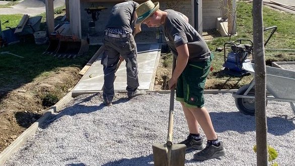 Auch unsere Burschen haben heute Vormittag fleißig gewerkelt und ordentlich angepackt! 👏 Der Vorplatz nimmt langsam Gestalt an und man kann schon richtig erkennen, wie schön alles am Ende aussehen wird. 🌿✨
