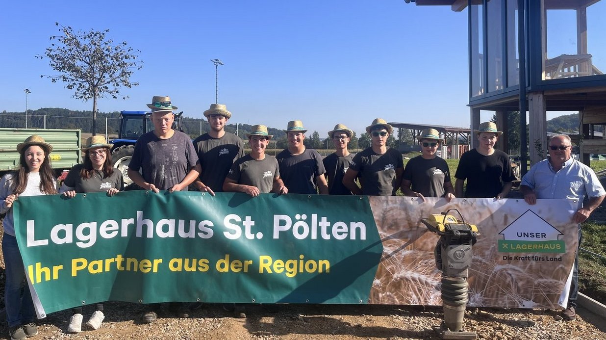 Gleich am Vormittag durften wir uns über Besuch von Franz Gunacker, Obmann der Lagerhaus-Genossenschaft St. Pölten, freuen 👋. Er hat uns mit Getränken, Hüten und Sonnenbrillen ausgestattet– perfekt für das heiße Wetter heute! 🥤🧢😎