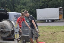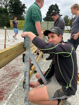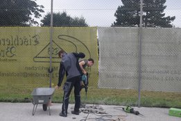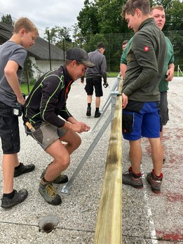 Unterstützt werden wir von einem Mitarbeiter der Firma Haunschmid, Werkzeuge bringen wir selbst mit und weiteres Material wird von der Firma oder der Gemeinde bereitgestellt. Für Pressearbeit und Besprechungen stehen uns Räume im Donaubad zur Verfügung – hier findet quasi die „Halbzeitbesprechung“ statt. ⚽🏆