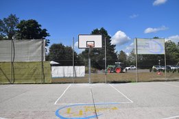 Nun sieht man auch schon Basketballkorb und Fußballtor stehen,