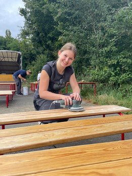 - Sanierung der 13 Terrassentische und Bänke im Kindergarten – hier legen wir eine Extrarunde ein.