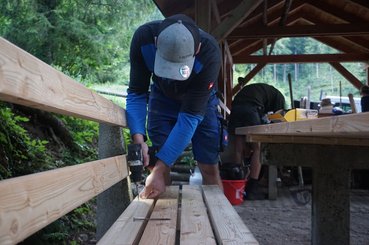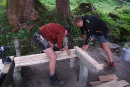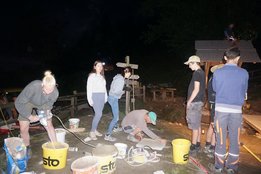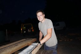 Bei Scheinwerferlicht werkten unsere Mitglieder noch mit voller Motivation an den Sitzgelegenheiten und an dem Abgang zum Bach.