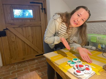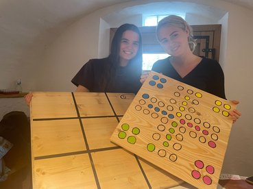 - Würfel und Bretter für die selbst gestalteten Gemeinschaftsspiele zugeschnitten
