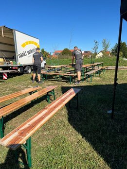 Zum Abschluss haben wir noch den letzen Feinschliff am Präsentationsort erledigt: Bänke wurden richtig platziert, Deko vorbereitet, Schilder nochmal kontrolliert und die Technik gecheckt. Es soll schließlich ein schöner Rahmen werden, wenn wir später unser Projekt mit Stolz herzeigen dürfen!