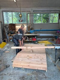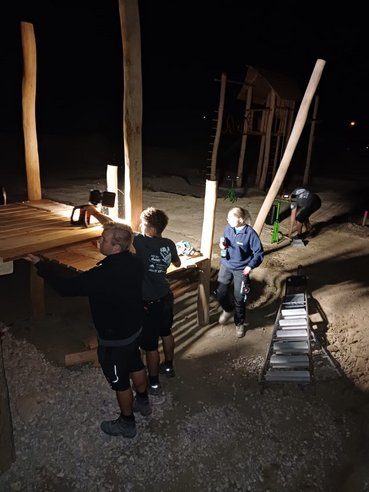 Nach dem Mittagessen arbeiteten die Burschen direkt an ihren Projekten weiter, in dem Fall Liegen zusammenbauen.