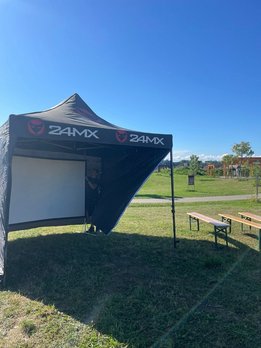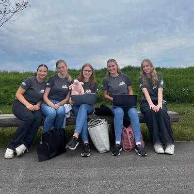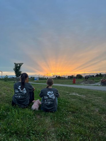 Es hat etwas gedauert, bis wir einen Überblick am Pump Track hatten und alle Materialien am richtigen Ort hatten. Die Mädls haben sofort mit der Flyer Gestaltung für die Präsentation am Sonntag gestartet. Dieser wurde an die Nachbarn und Gasthäuser verteilt, um somit auch gleich über den Lärm am Wochenende zu informieren. Danach wurde mit den Social Media Arbeiten und den Blogposten gestartet.