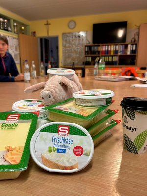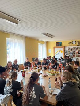 Um 7 Uhr trafen sich alle zum gemeinsamen Frühstück – es gab Semmeln mit Streichkäse, Schinken, Käse und Nutella. Ich hab natürlich auch was bekommen!