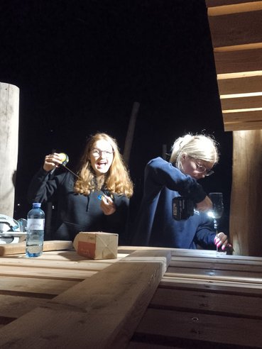 Eine andere Gruppe machte sich währenddessen an unsere Zusatzaufgabe: die Bänke zu bauen. Hier war ich natürlich auch mit von der Partie :)