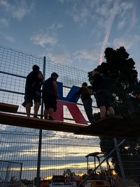 Um 19:30 gab es dann Wurst- und Käsesemmeln. Gestärkt ging es weiter mit dem Anbringen des Schriftzuges am Eingang des Pumptracks und mit dem Vorbereiten des Beets für die Bäume, die wir am nächsten Tag von der Gärtnerei Offenberger bekommen werden.