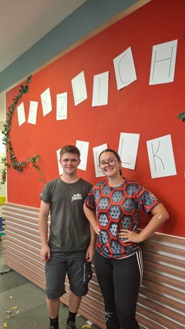Die Bücher finden ihren Platz in den Regalen, eine gemütliche Leseecke entsteht, und die neue Bücherei wird liebevoll dekoriert. Unsere Kreativen Köpfe eskallieren also noch einmal komplett und setzten bzw. lassen noch einmal die letzten Ideen umsetzten. Der Marathon neigt sich dem Ende zu – genau wie unsere Kräfte.