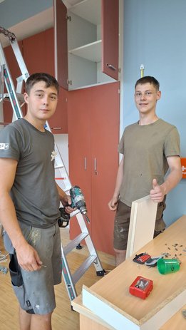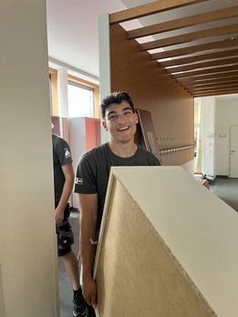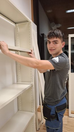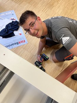 Nun schwitzen die Burschen und Mädels beim Aufbauen der Regale, doch das ist hoffentlich auch bald geschafft.