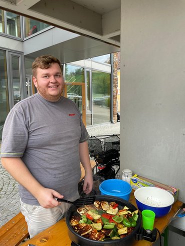 Nach diesen Worten gab es nun spät aber doch, endlich eine Essenspause. Doch eine richtige Pause war es nicht, sondern eher eine Besprechung für den restlichen Nachmittag. Was machen wir noch für Instastorys, hat noch jemand Ideen für Reels, können wir die Bücherkästen schon einräumen? Und nach einer halben Stunde, Würstel, Gemüse und Spaß geht es nun sofort weiter mit übrigen Aufgaben weiter!