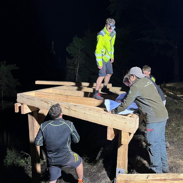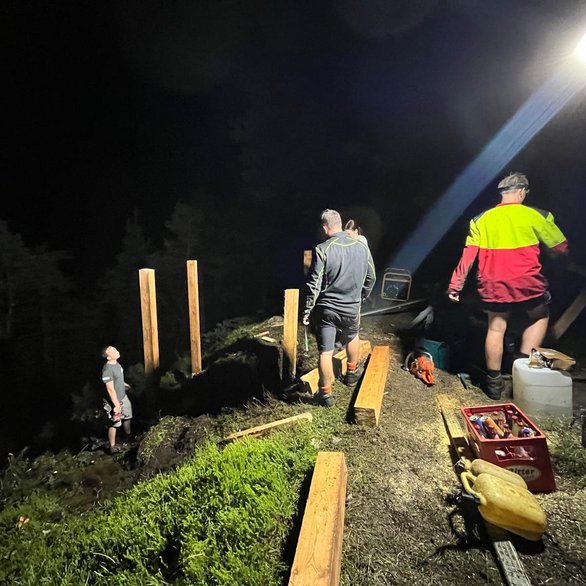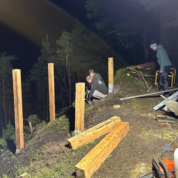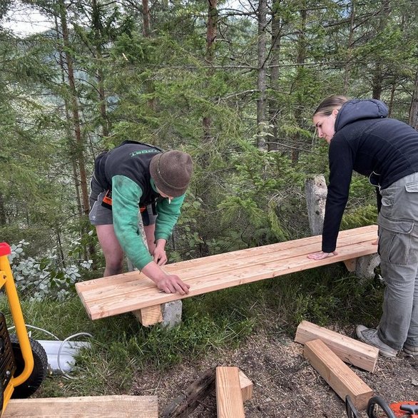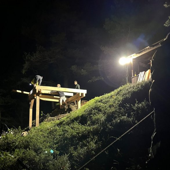 In den letzten Stunden wurde fleißig an unserem Projekt gearbeitet, um alles rechtzeitig zur heutigen Präsentation fertigzustellen. Bis spät in die Nacht haben wir gemeinsam angepackt: Die benötigten Bretter wurden mithilfe der Seilbahn zu unserem Standort transportiert, anschließend montiert und verschraubt. Auch das Geländer wurde sorgfältig aufgebaut – Schritt für Schritt nimmt unser Projekt immer mehr Form an.