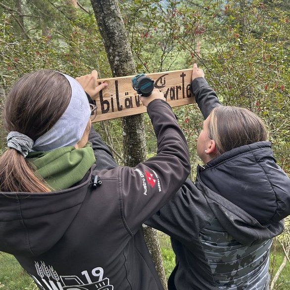 Nun befinden wir uns im finalen Endspurt: Als nächstes stehen noch die Montage der Beschilderung, das Aufstellen der Sitzbank sowie die Einrichtung unseres Fotopoints auf dem Programm.