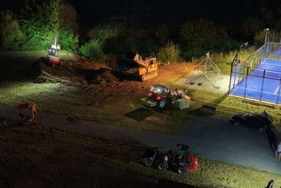 Gestern Abend wurde noch das letzte Schaukelpferd einbetoniert und mit einem kleinen Lagerfeuer lies die Landjugend den Abend noch gemütlich ausklingen. Mit guter Laune starten wir in die letzten Stunden. Der Beach wird gerecht, der Rasen wird angesät und die restlichen Maschinen werden weggebracht.