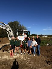 Am ersten Tag des Projektmarathons wurden zuerst alle Materialien und Maschinen, die benötigt werden, geholt und schon ging es los, dass die Burschen einen Zugang zum Bach baggerten. Währenddessen kümmerten sich die Mädels schon fleißig um die Medien und die Verkündung unseres Projekts. Flyer wurden gestaltet, Storys veröffentlicht, Interviews durchgeführt und natürlich viele Fotos geschossen.