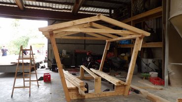 Als einer der ersten Arbeiten wurde die Sandkistenüberdachung vermessen und es wurde mit der Herstellung begonnen. Des Weiteren arbeiteten wir an der Schotterung des Rutschplatzes und der bestehenden Schaukel.
