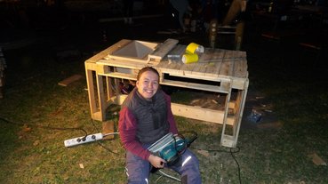 Nach einer Nachtschicht in der wir an unserem Rutschturm und dem Jausenplatzerl weiterarbeiteten und eine Palettenbank für die Kinder fertigstellten, starteten wir voller Motivation um 6:00 Uhr in den 2. Projekttag.