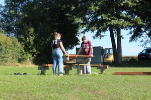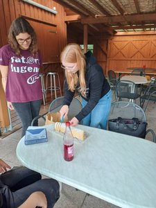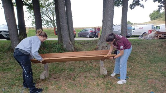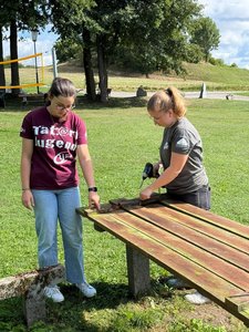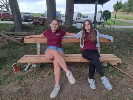 Unsere fleißigen Bienchen haben noch nicht genug vom Projektmarathon und stellen sich gleich selbst noch eine Zusatzaufgabe. Elisa und Marlies haben es sich zur Aufgabe gemacht, die Sitzgelegenheiten am Teich zu erneuern. Ein Tisch mit zwei dazugehörigen Bänken und zwei Bänke mit Lehne sollen erneuert und aufgewertet werden. Somit lautet die neue Teamaufteilung: