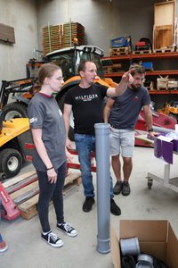 Unser Team “Slackline” arbeitet bereits am ersten Fundament und hebt soeben das erste Loch aus. Per Hand und mit Unterstützung vom Bagger geht es schnell voran. Das Loch wird auf frostfreie Tiefe (1 Meter unter Niveau) gegraben, um eine lange Lebensdauer des Fundaments sicherzustellen.