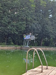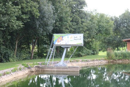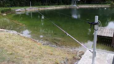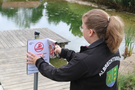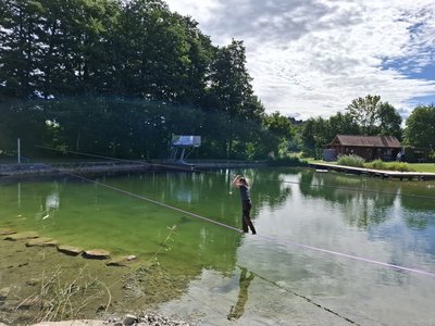 - Montiert beim Badeteich in Albrechtsberg eine Slackline über dem Wasser