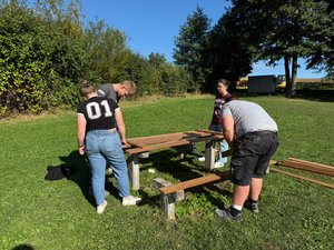Unser Team hat es sich zur Aufgabe gemacht, die Sitzgarnituren beim Volleyballnetz zu erneuern. Nun erstrahlen 4 Bänke und 1 Tisch in neuem Glanz!