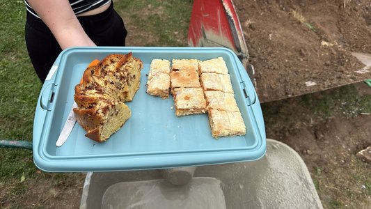 Wir bedanken uns ganz herzlich bei Cornelia Bernleitner, die uns eine köstliche Roulade vorbeigebracht, und Stephan Führer, der die dazugehörigen Servietten und Messer organisiert hat. Unsere Mitglieder nahmen die Stärkung dankend an, ehe es weiter an die Arbeit ging.