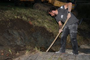 … muss sie auch wieder füllen. In unserem Fall füllen wir unser Loch mit dem Basisfundament für unsere Slackline, bestehend aus Steinen und Kies. Außerdem wird ein Kunststoffrohr versetzt, welches für die spätere Montage der Slackline eine tragende Rolle spielen wird.