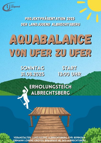 Nach langen Überlegungen haben wir endlich einen Titel für unser diesjähriges Projekt gefunden. Unsere Slackline wird unter dem Namen “Aquabalance – von Ufer zu Ufer” präsentiert.