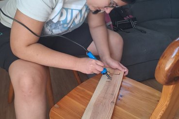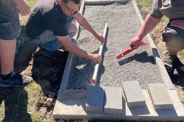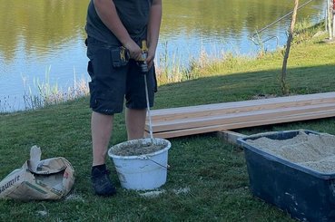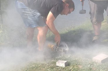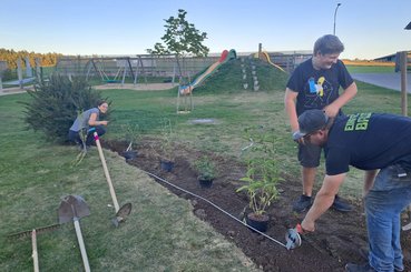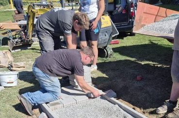 Um bei diesem heißen Projektmarathonwochenende nicht zu dehydrieren spendierte uns das Lagerhaus Litschau gleich 8 Kisten Getränke. Auch Randsteine, Pflastersteine und Beton werden vom JK Erdbau gesponsert. Unsere Mitglieder setzten geschickt die Randsteine ein und mischten den Beton an. Für unsere Heckenpflanzen wurden zusätzlich kleine Holzschilder angefertigt, um die verschiedenen Sorten zu erkennen. Mit einem Lötkolben wurde die Schrift wetterfest gemacht.