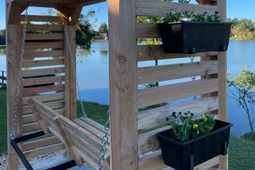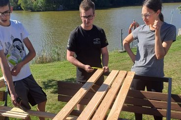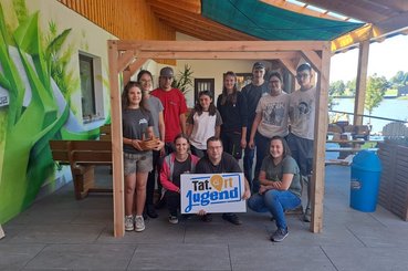 - Baut uns eine Hollywoodschaukel aus nachwachsenden Rohstoffen, damit man in einer Schwimmpause Körper und Seele baumeln lassen kann und den Blick auf den wunderschönen Müllerteich richten kann.
