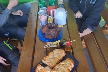 Im Laufe des Vormittags besuchte uns Frau Diesner-Wais Martina. Sie bewunderte unseren Baufortschritt und brachte etwas Süßes zum Naschen. Vielen Dank für die Mitbringsel! Auch heuer versorgten uns die ortsansässigen Bäuerinnen mit einem Frühstück. Ein großes Dankeschön dafür!