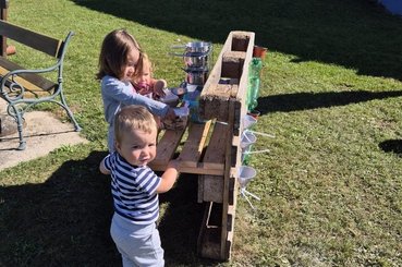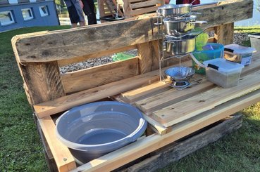 Besonders freuten wir uns zu sehen, dass die unter den Gästen befundenen Kinder unsere Matschküche schon eifrig ausprobiert haben.