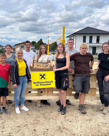 Unsere Aufgaben sind vielseitig und spannend: Am Jugendplatz im Generationenpark entstehen neue Sitzgelegenheiten in Form von Gabionen. Hier zeigte sich gleich starker Zusammenhalt – die Gitter wurden von geschickten Händen rasch zusammengebaut und die Holz-Sitzflächen zusammengeschraubt.