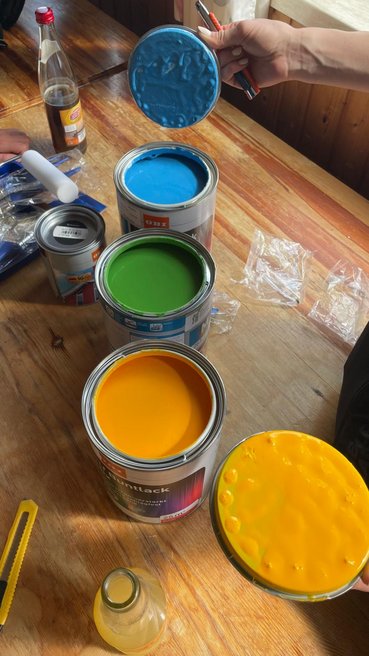 Drei unserer Helfer machten sich gleich auf den Weg zum Einkaufen. Auf der Liste standen Farbe, Spax-Schrauben und Holzplatten – wichtige Materialien, um unser Projekt weiter voranzutreiben. Mit den Farben grün, orange und blau, wollen wir unser Landjugendlogo kreativ in die Gestaltung der Absperrung integrieren.