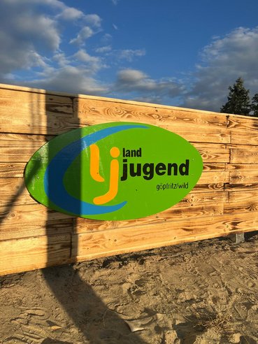 Zuerst kümmerten wir uns um unsere Landjugend-Logos. Nachdem die Platten gestern bunt gestaltet wurden, haben wir sie heute mit Klarlack versiegelt. So sind sie wetterfest und strahlen noch schöner.