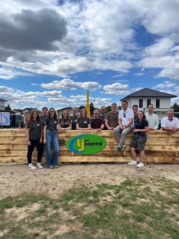 Im Mittelpunkt stand das Landjugend-Logo: Die Platte bekam einen grünen Hintergrund, und die Schablone wurde sorgfältig gezeichnet und ausgeschnitten. Währenddessen gönnte sich der Rest der Gruppe eine wohlverdiente Pause, um Kräfte für die nächsten Arbeitsschritte zu sammeln. Auch das gehört dazu – durchatmen, um dann wieder voll durchstarten zu können.